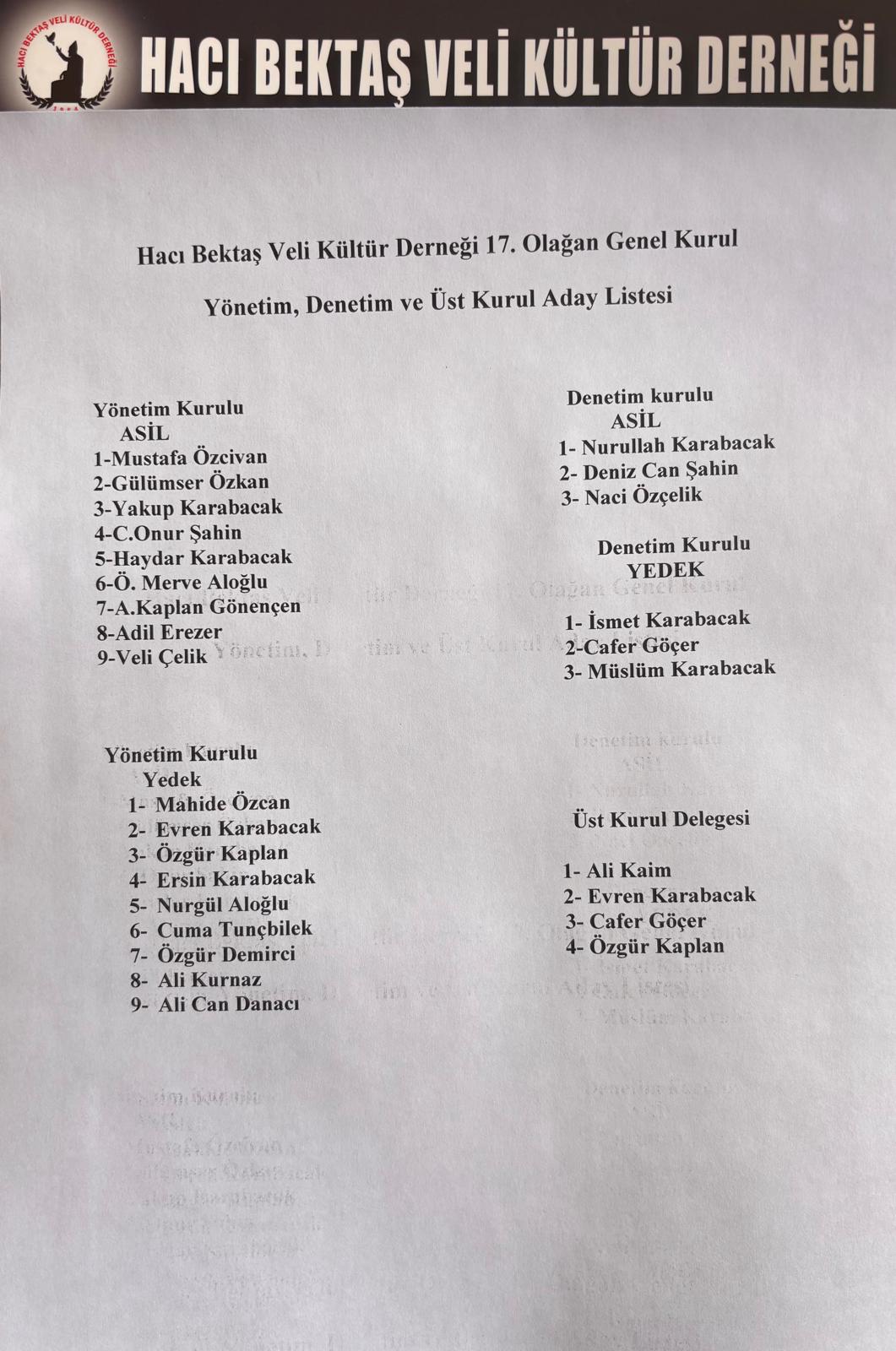 Hacı Bektaş Veli Kültür Derneği 17. Olağan Genel Kurulu Belediye Konferans Salonunda yapılmıştır. Yeni yönetime görev süresi boyunca başarılar dileriz.